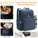 All-in-One 4-Person Picnic Backpack Set with Insulated Cooler, Complete Tableware & Large Blanket - Leakproof Double Deck Cooler Backpack, Plates, Wine Holders, Padded Straps for Camping, Beach, Park - Heavy-Duty Portable Picnic Basket for