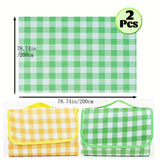 2 Extra Large Durable Picnic Mats, Waterproof And Sandproof, Foldable Beach Mats, Suitable for Camping, Picnicking, Hiking And Activities - Yellow Grid - Green Grid (79*79 Inches), Beach Blanket, Camping Mat, Beach Mat Foldable, Beach Towel, Beach Loungin