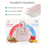 Insulated Lunch Bags for Women, Cute Quilted Lunch Box, Lightweight Puffy Padded Waterproof Lunch Tote, Reusable Lunch Cooler for Work Picnic Travel