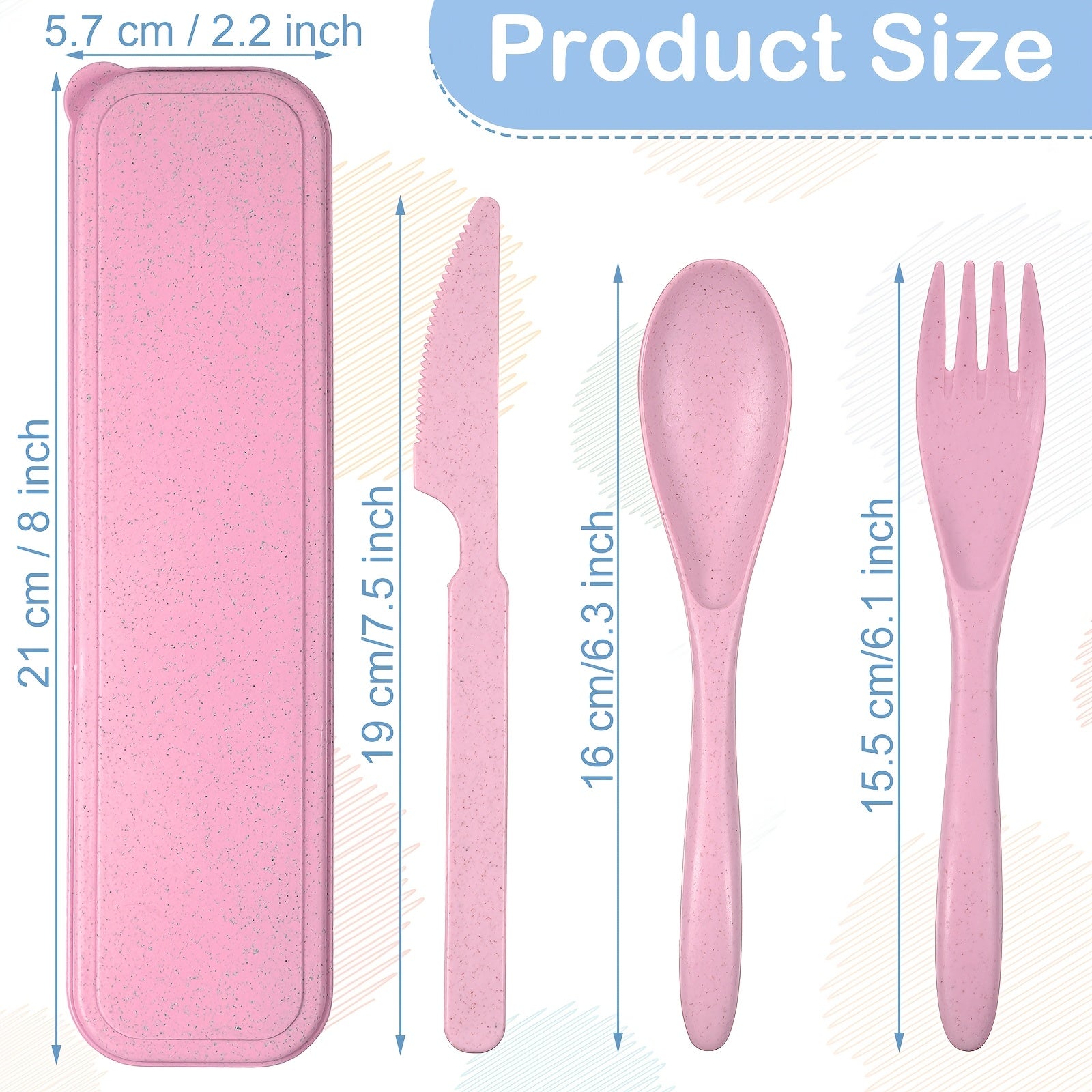 28pcs High-Quality Wheat Straw Cutlery Set with Colorful Cases - Reusable Spoons, Forks, Knives for Travel, Picnics, Lunch - Durable, Lightweight & Portable Tableware, Wheat Straw Dinnerware Set