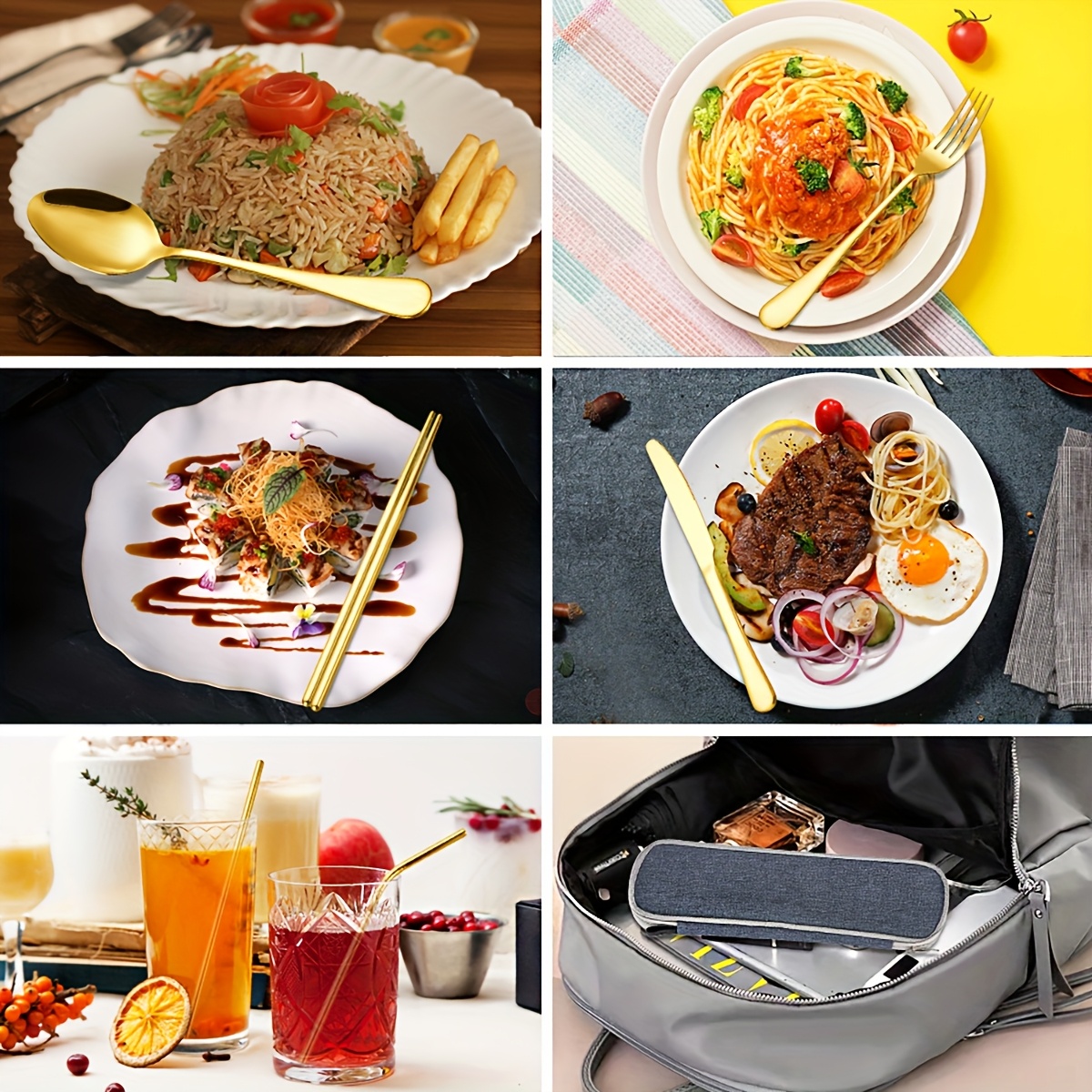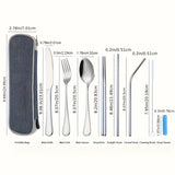 36pcs Portable Stainless Steel Flatware Set, Travel Camping Utensils Set, Portable Cutlery Travel Silverware Dinnerware Set With A Waterproof Storage Case, Lightweight Kitchen Accessories, Fork, Spoon, Knife, Chopstick, Straw, Brush, Tip