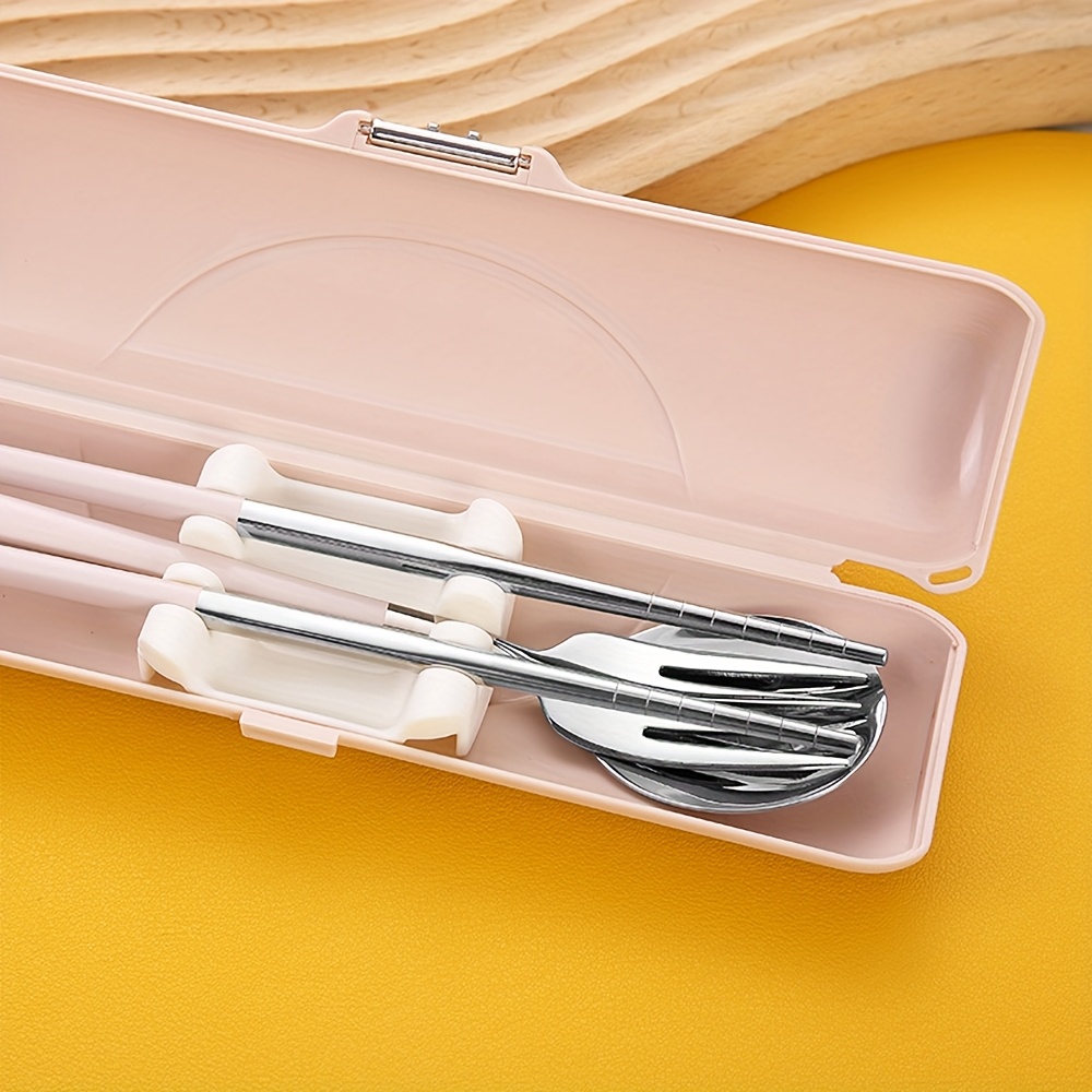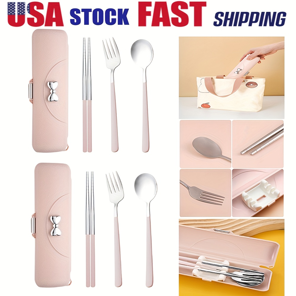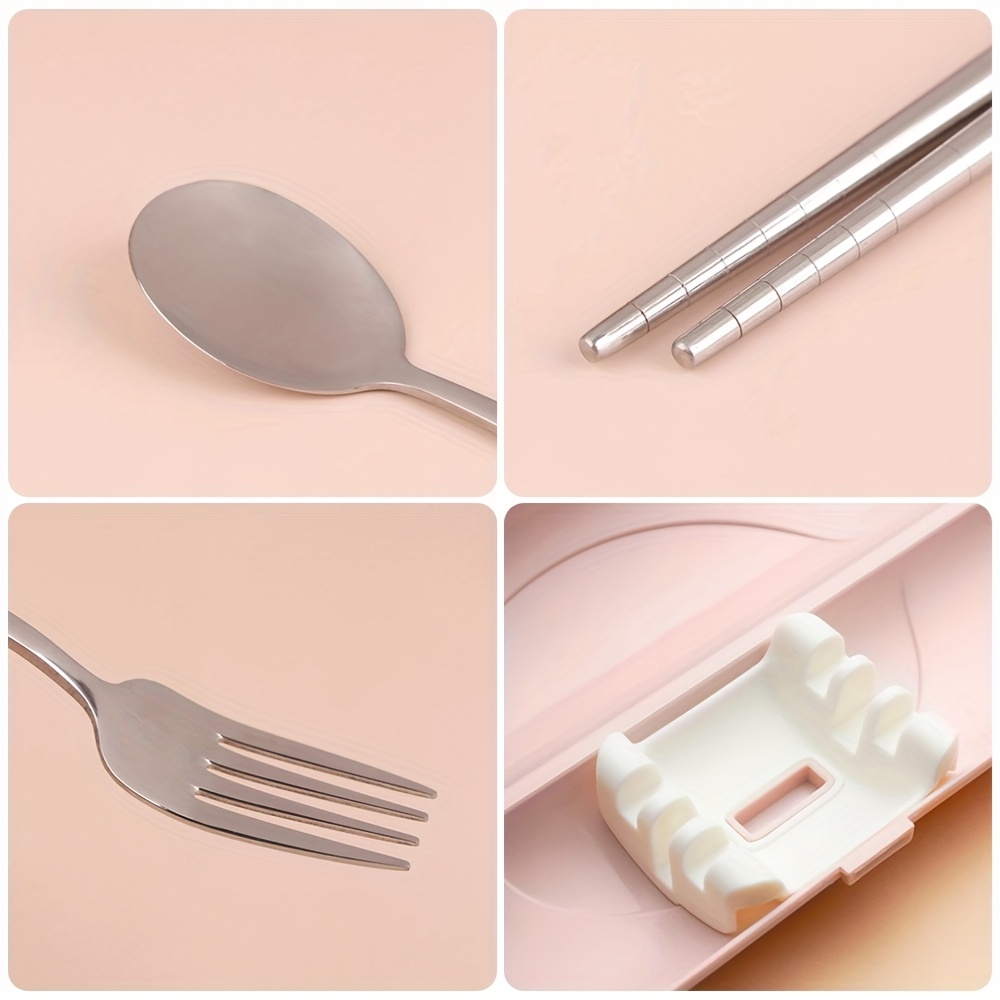 8pcs 304 Stainless Steel Portable Cutlery Set with Storage Box - -Friendly Hygienic Travel Tableware (Chopsticks, Spoon, Fork) in Pink Case with Lid for School Lunches, Camping, Picnic - Food-Grade Durable Utensils
