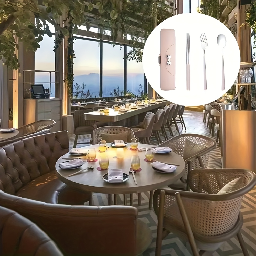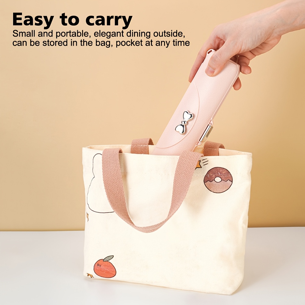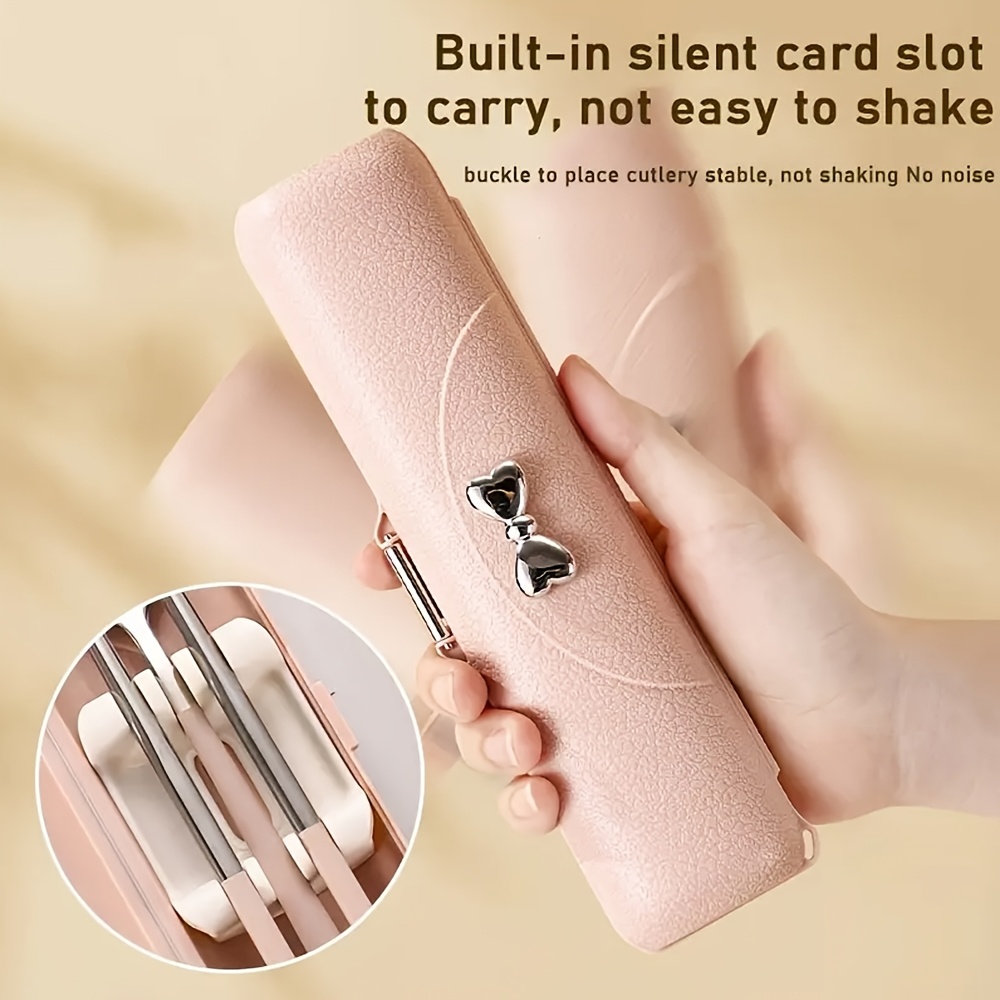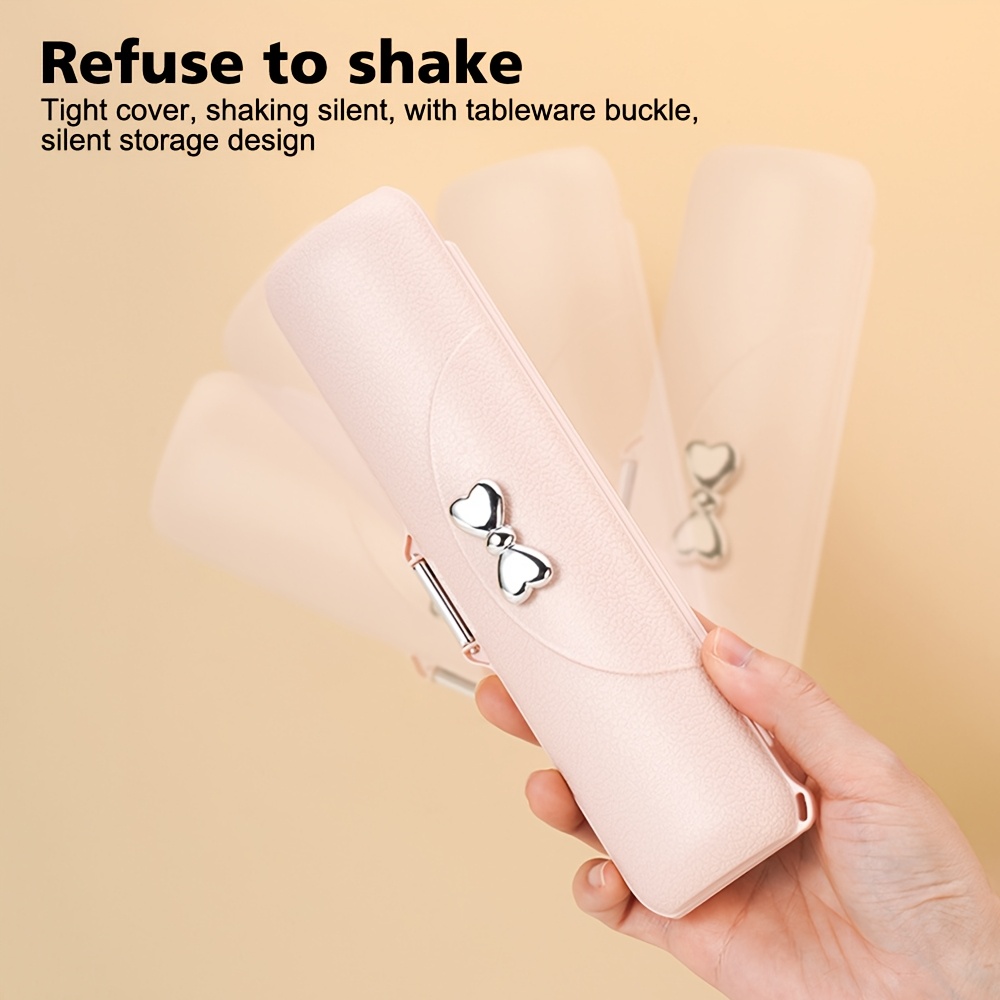 8pcs 304 Stainless Steel Portable Cutlery Set with Storage Box - -Friendly Hygienic Travel Tableware (Chopsticks, Spoon, Fork) in Pink Case with Lid for School Lunches, Camping, Picnic - Food-Grade Durable Utensils