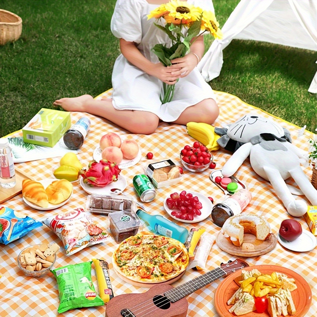 FLIXPLANY Portable Picnic Mat - Lightweight & Durable Twill Weave Outdoor Blanket with Vibrant Yellow & White Checkered Design, Easy to Clean, All-Season Use for Beach, Camping, Hiking, Picnics