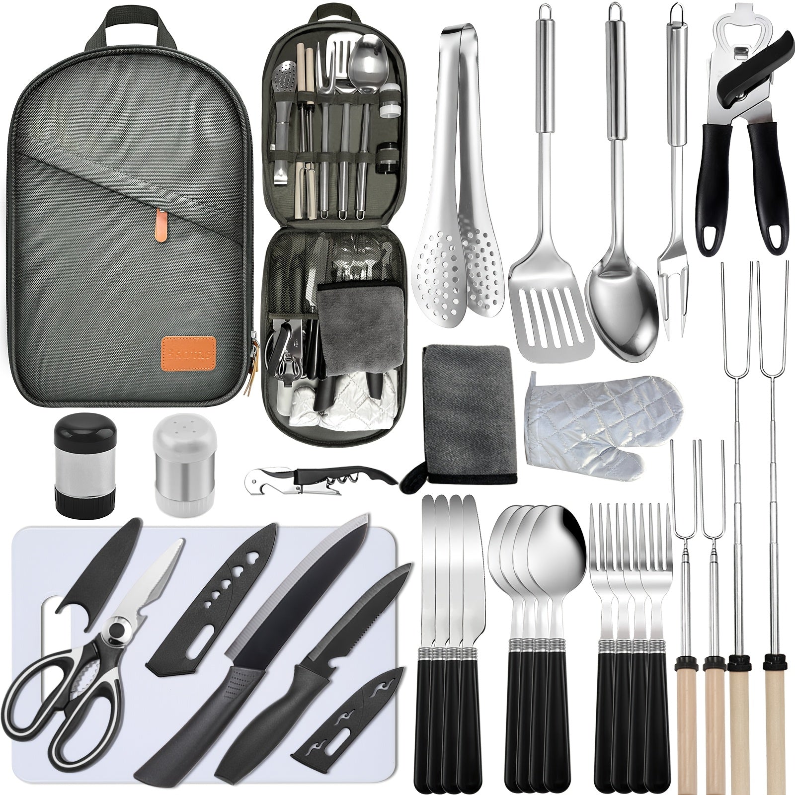 Portable Camping Kitchen Utensil Set-31pcs Camping Essentials Camping Accessories Gear Must Haves Camping Cookware Kit, Stainless Steel Outdoor Cooking And Grilling Utensil Organizer Travel Set Perfect For Travel, Picnics, RVs, BBQ, Parties And More